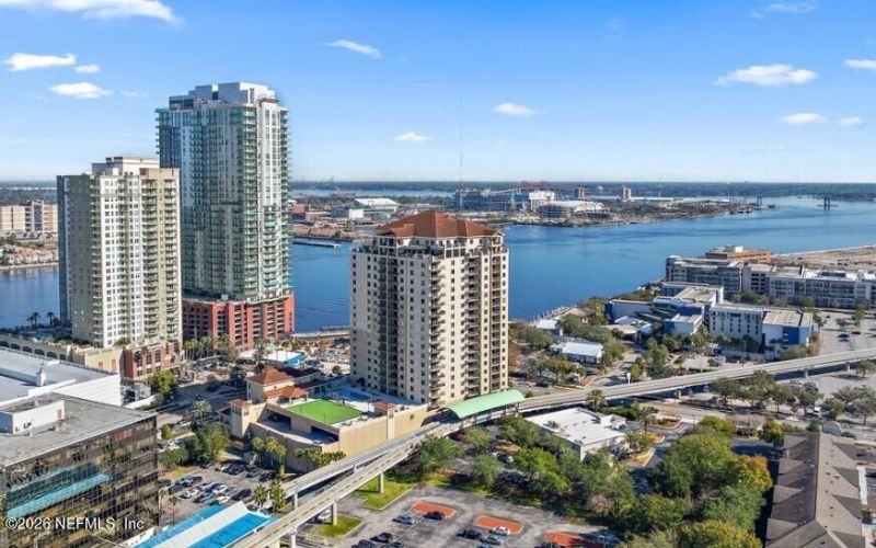 Awake to amazing sunrise views on your 5th floor terrace, overlooking the Jaguars new ''Stadium of the Future''. This desirable, updated 2/2, open floor plan has a water view from every window and world-class amenities, i.e., pool, hot-tub, fitness, outdoor grilling & tv area as well as fire pits. This is the ideal location in Jacksonville just across from the beautiful Southbank Riverwalk and within a short walk to over 20 restaurants. Unit comes with two parking spaces located in the secure garage at the base of the building.